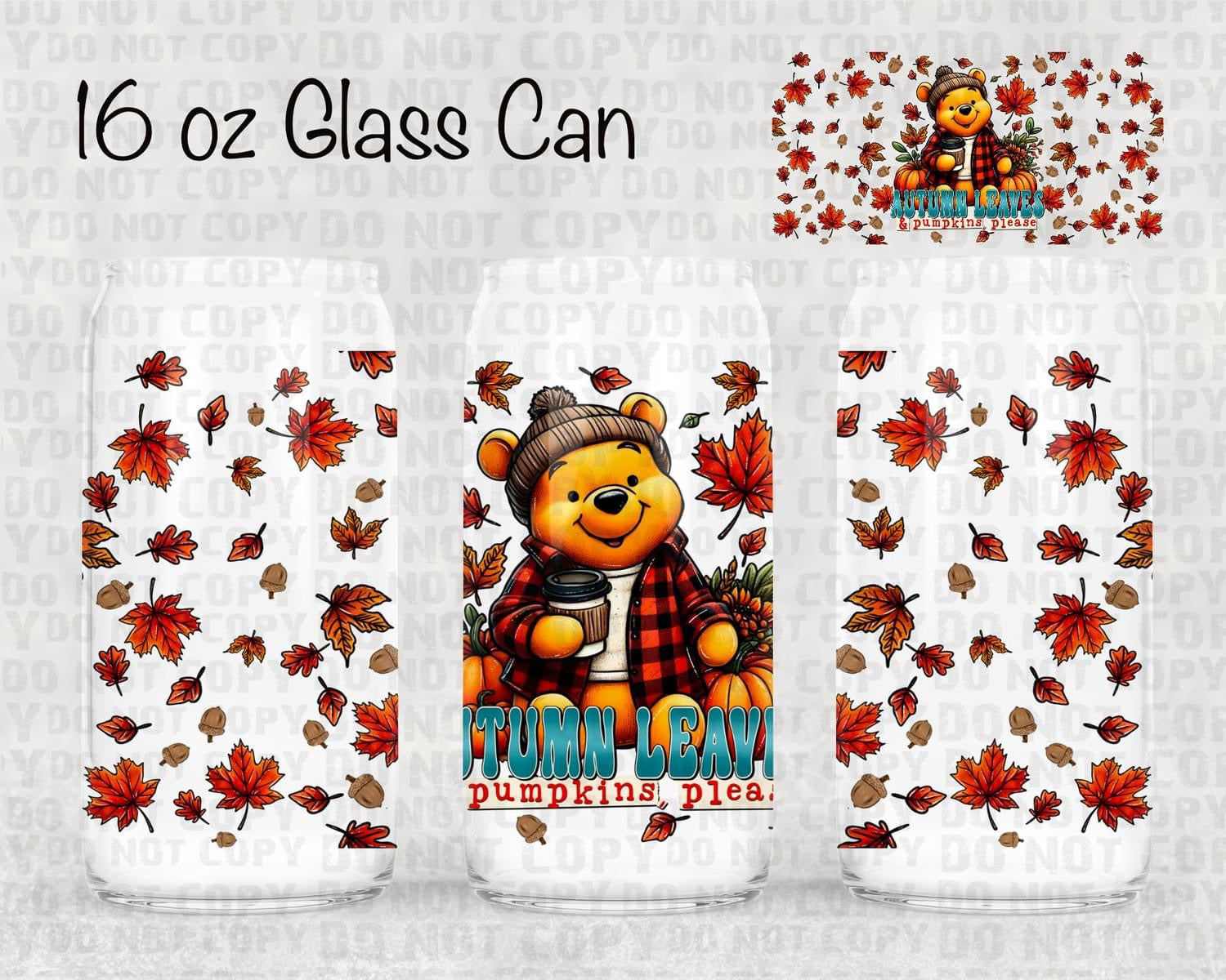Cheers to fall with our adorable Beer Glass! This 16 oz can glass features charming autumn leaves and a cute bear design. Perfect for enjoying your favorite brews with a touch of whimsy. Don't miss out, get yours today!