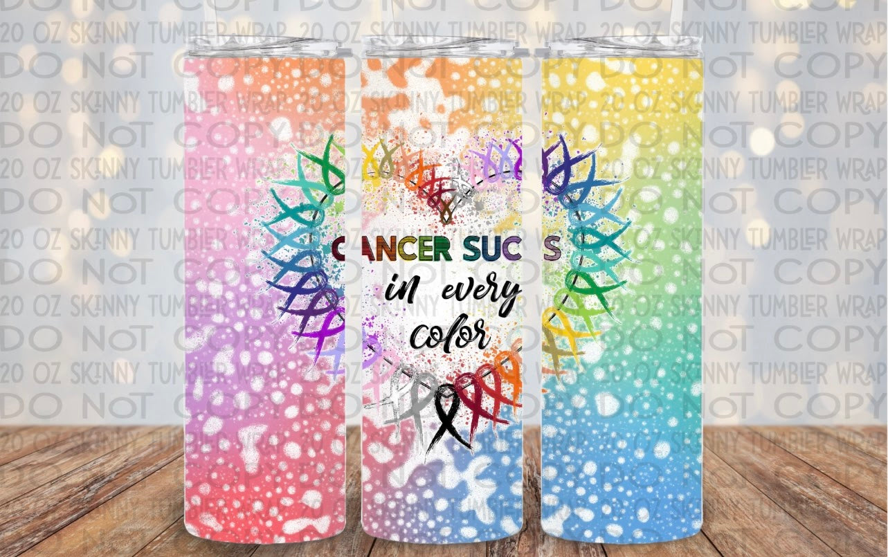 Cancer sucks in every color | 20 oz Skinny Tumbler Sublimation