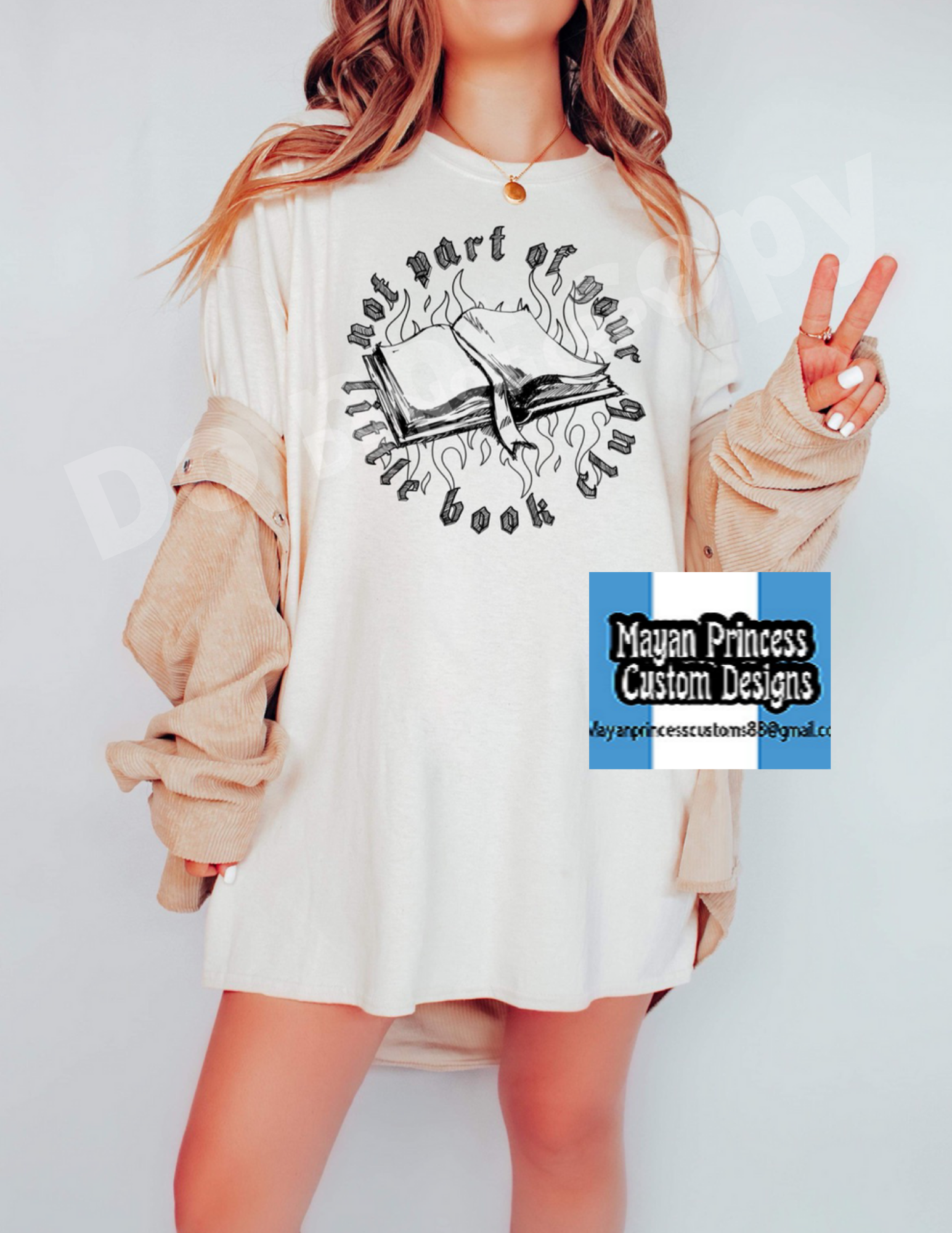 This Not Part of Your Little Book Club T-shirt is perfect for the independent thinker. Show the world you're not restricted to what's been written in a book and stand up for what you believe! With a statement that's both sassy and empowering, this shirt is a surefire way to make a statement. Not your typical bookish look!