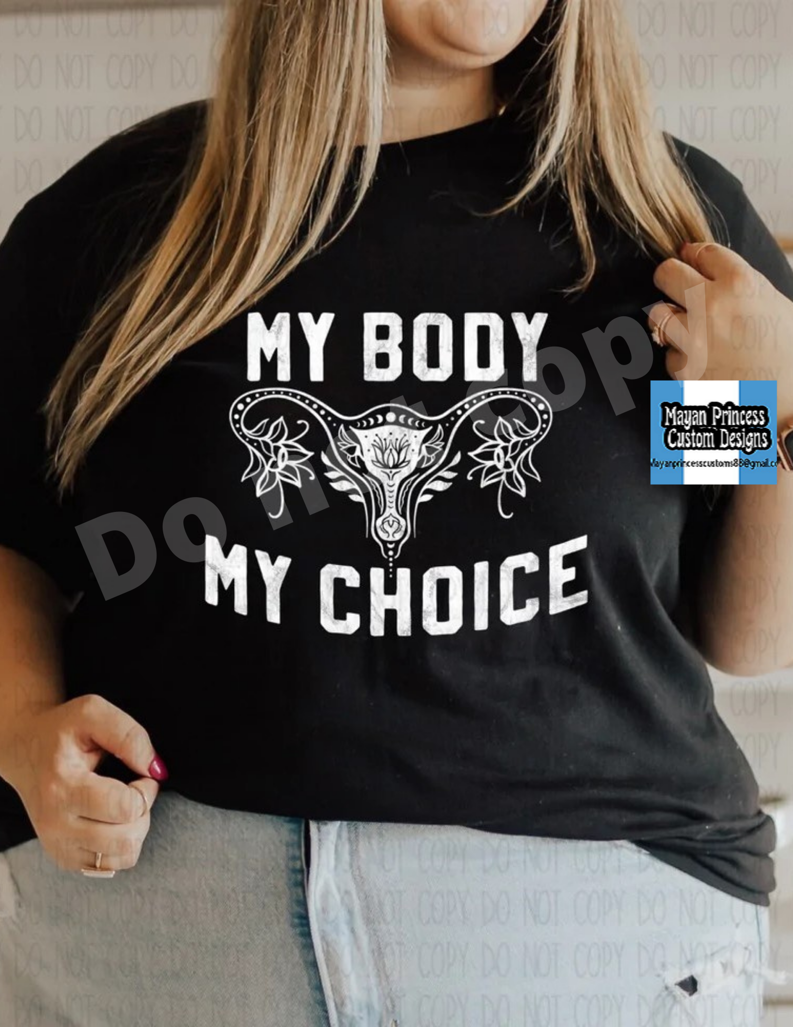 Celebrate your individual freedom with this 'My Body My Choice' Women's Rights T-Shirt. The bold slogan is a powerful reminder of your right to control your own body. A perfect statement piece for any wardrobe.