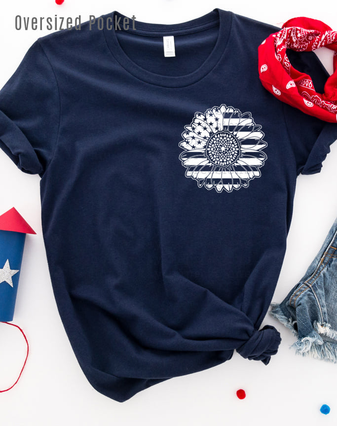 Stay in style and show off your sunny attitude with our Sunflower Flag Pocket Tee! Featuring a pocket stitched with the sunflower flag, this comfy T-shirt will reflect your positive vibes and add a splash of color to any outfit. (Seriously, it's too cute not to have!)
