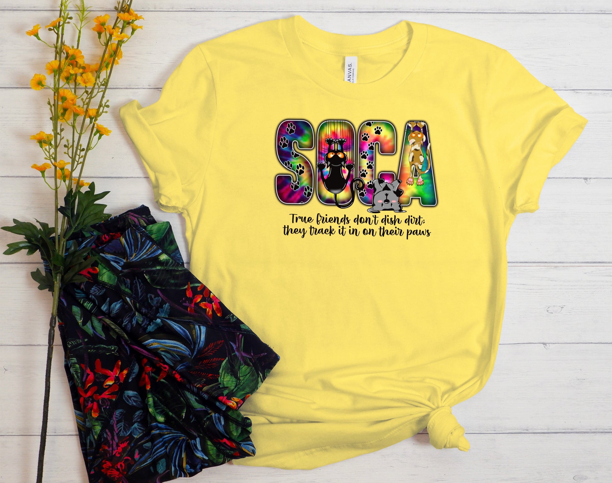 It's time to dish the dirt - SOCA Rescue style! Show your support for the Shelter Of Compassionate Animals and their friends with this T-shirt featuring their signature 'dish dirt' slogan. It's the perfect way to get the conversation started - and you'll be doing good deeds while you look good!