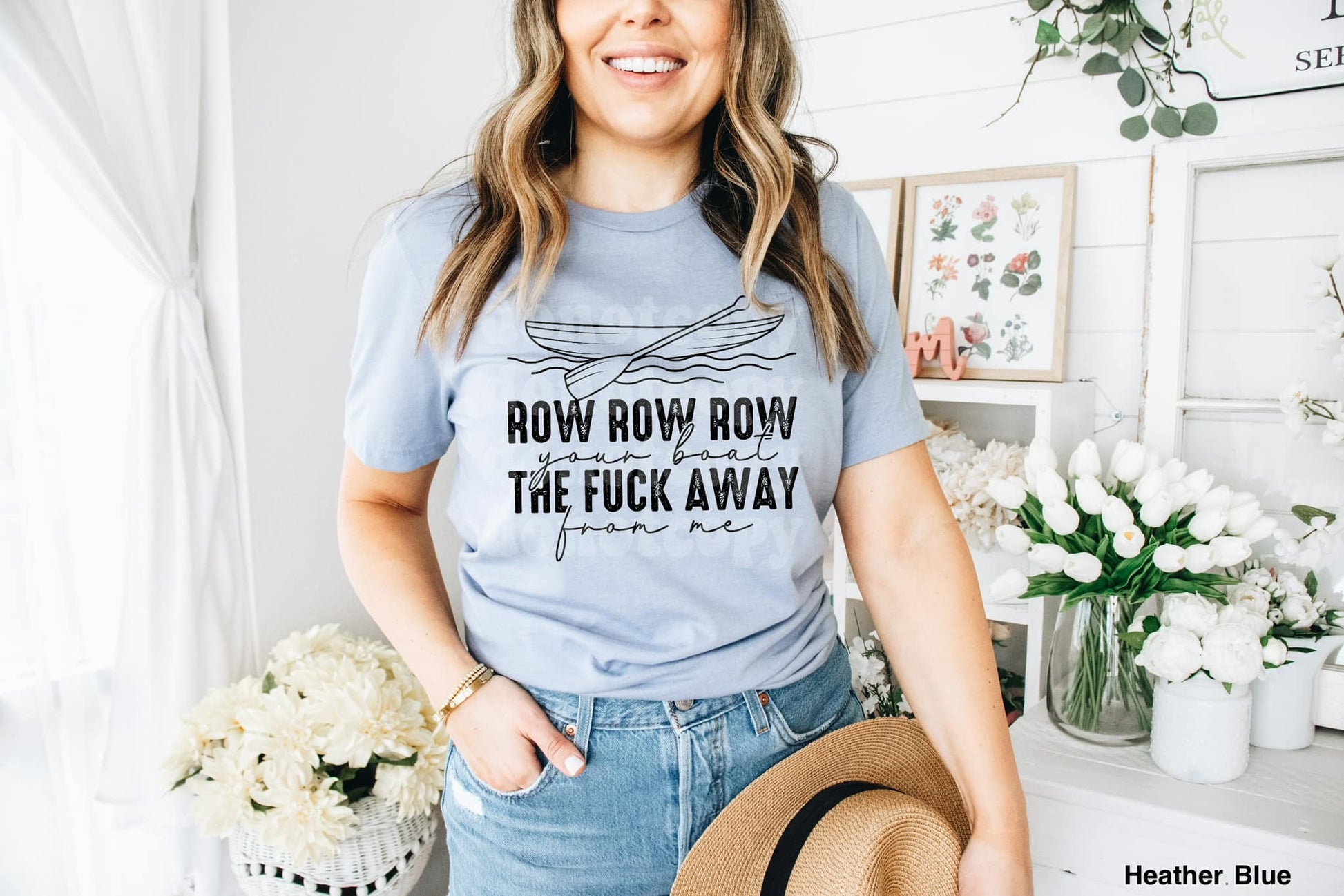 Ahoy matey, show your true colors with this stylish "Row, row, row the boat the fuck away from me" t-shirt. Perfect for days when you feel the need to take a break from people, this unique design is sure to make 'em smile, or at least give 'em something else to talk about.