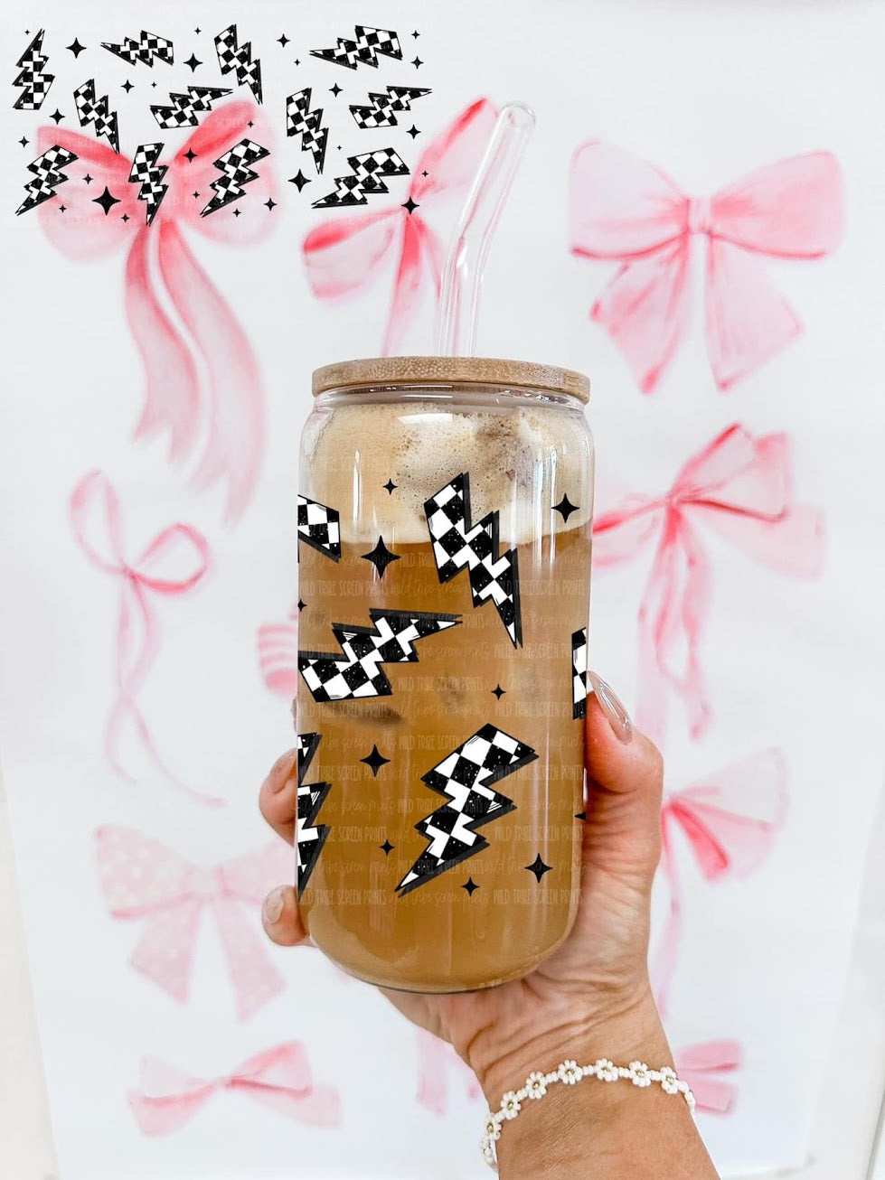 Get your lightning bolt fix with this unique glass can. With a 16 oz capacity and a black and white checkered design, it's perfect for any checker lover looking to add extra spark to their drinkware collection. Cheers to an electrifying drinking experience!