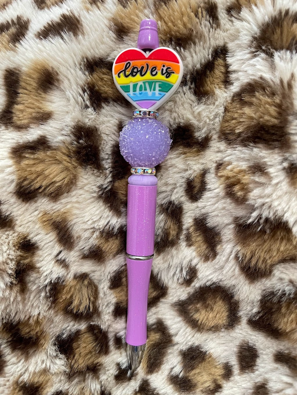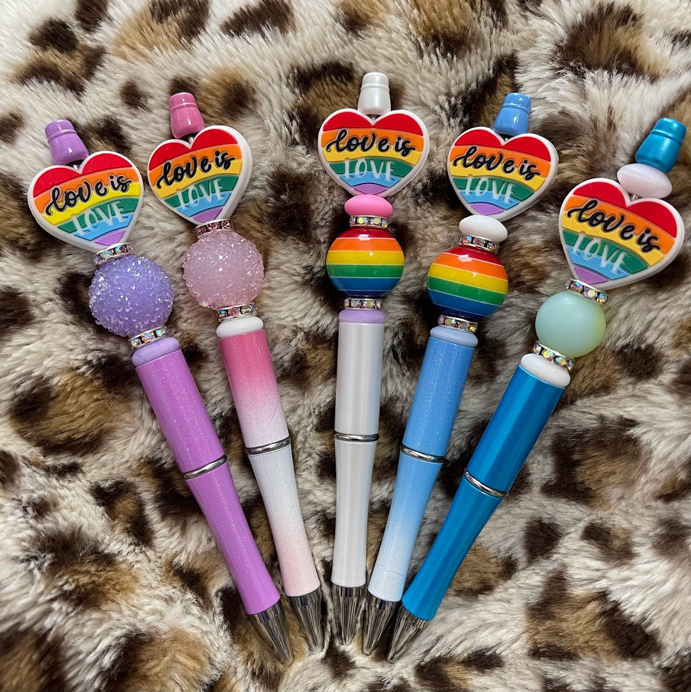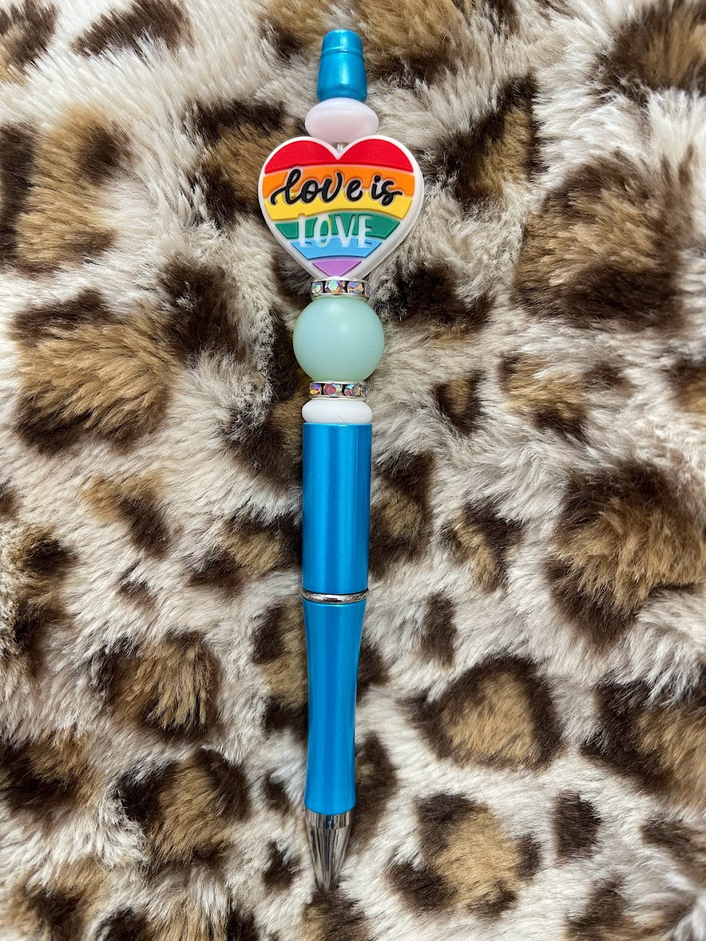 Show your pride with this beautiful Love is Love beaded pen. Crafted with care and attention to detail, this writing utensil is more than just a tool, it's a statement! Add flair and personality to your work with this stylish and fun pen - the perfect accessory for any LGBT pride celebration or everyday use!