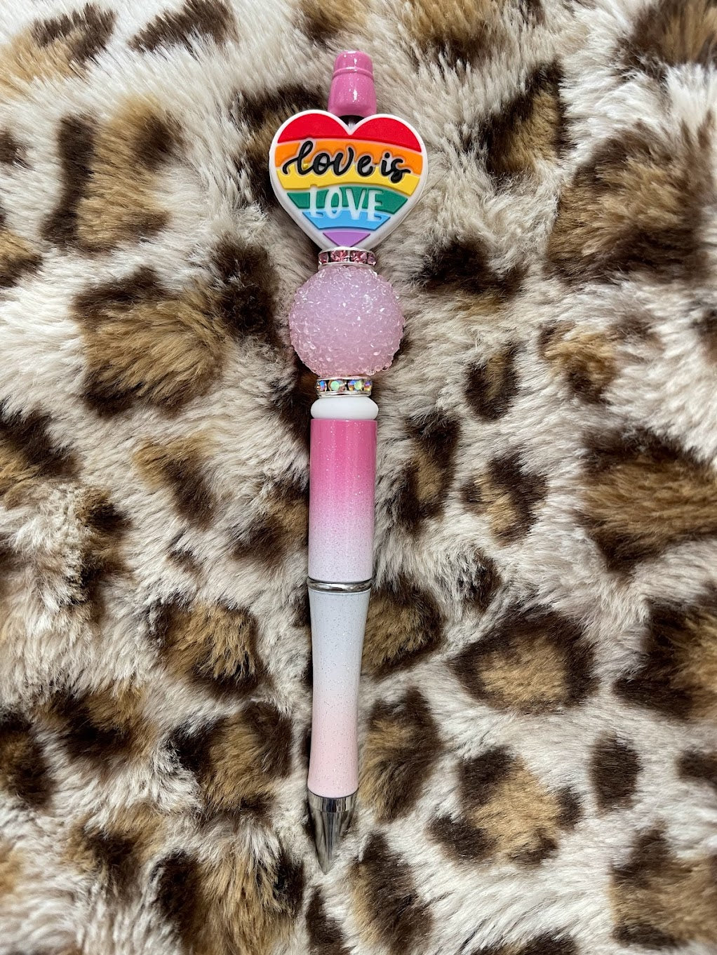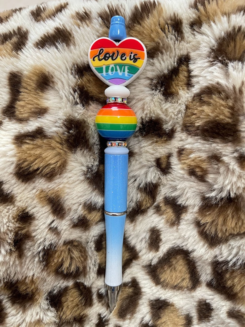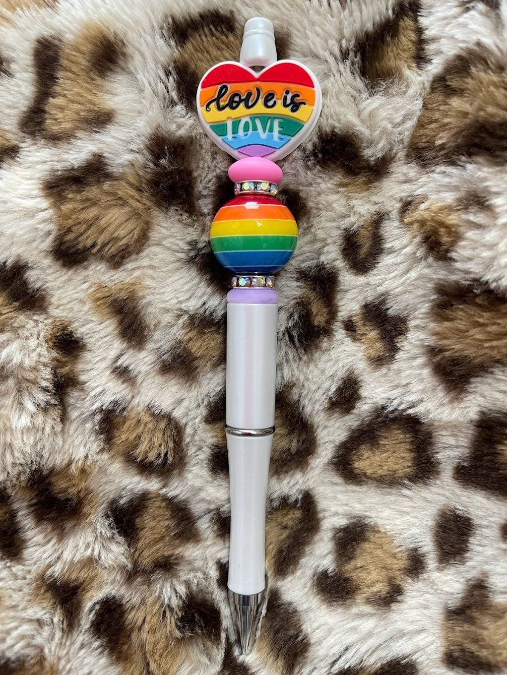Show your pride with this beautiful Love is Love beaded pen. Crafted with care and attention to detail, this writing utensil is more than just a tool, it's a statement! Add flair and personality to your work with this stylish and fun pen - the perfect accessory for any LGBT pride celebration or everyday use!