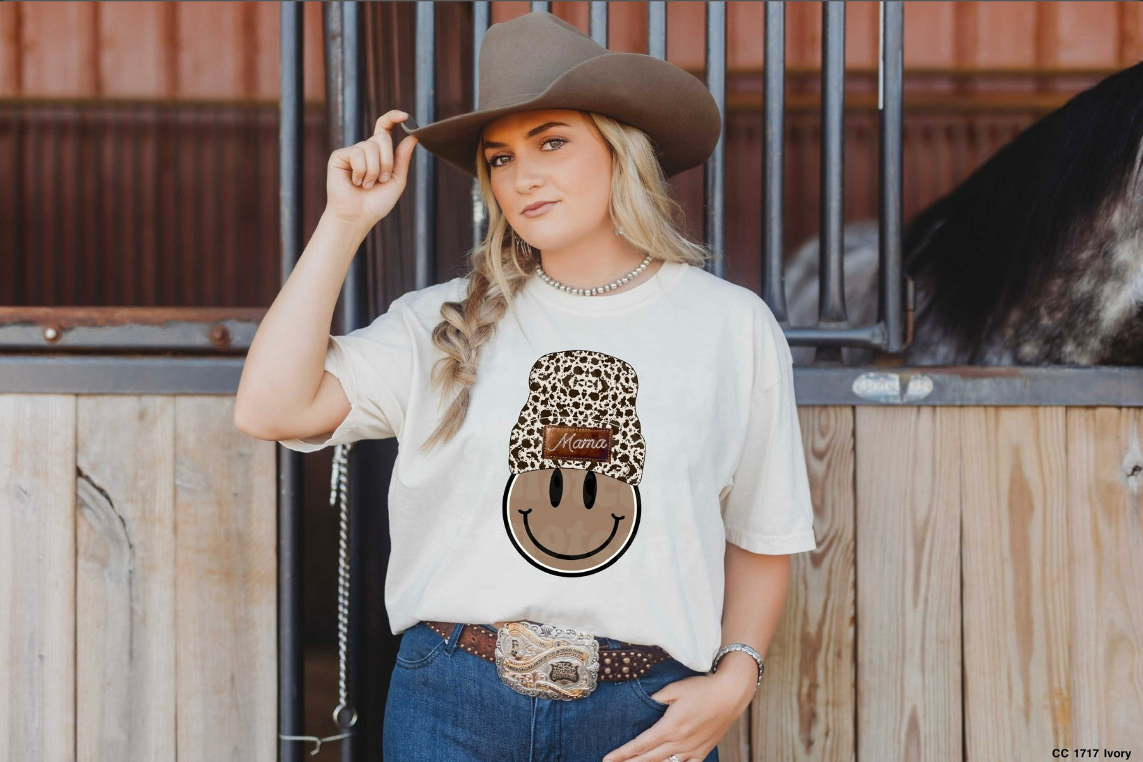 Momma smile with cow print hat | T shirt