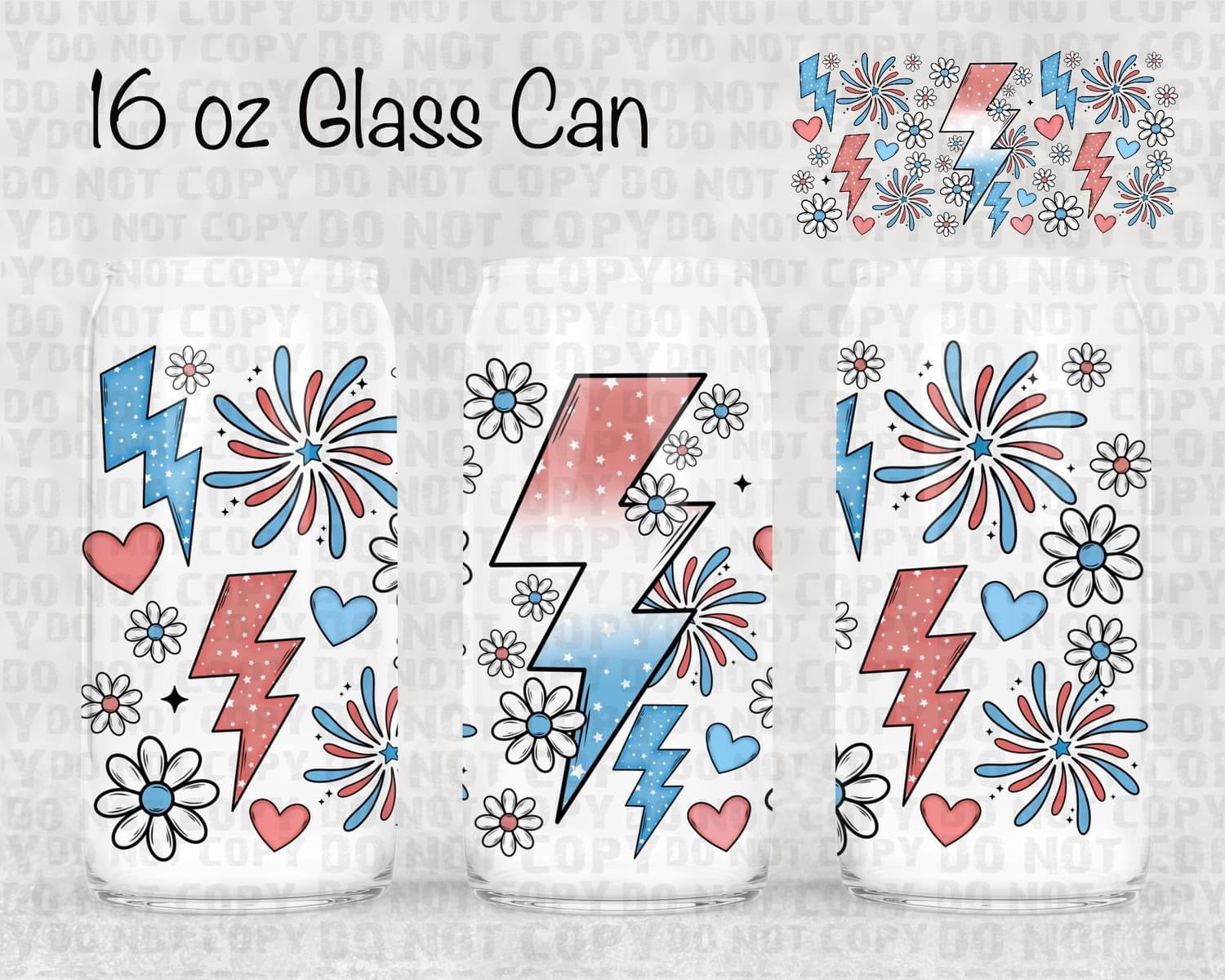 Red, White, and Blue Lighting Bolts | Beer Glass Can