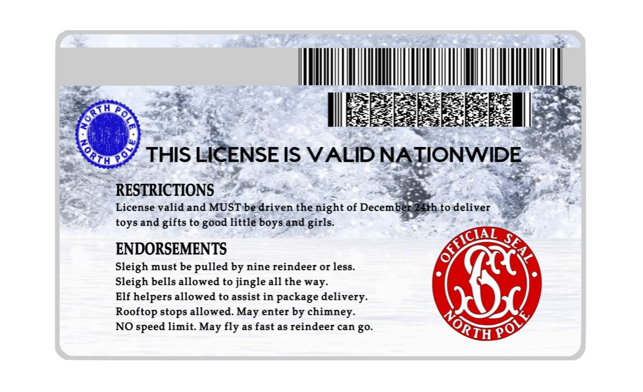 Santa Claus ID cards, Santa's Lost Driver's License, Santa Claus License