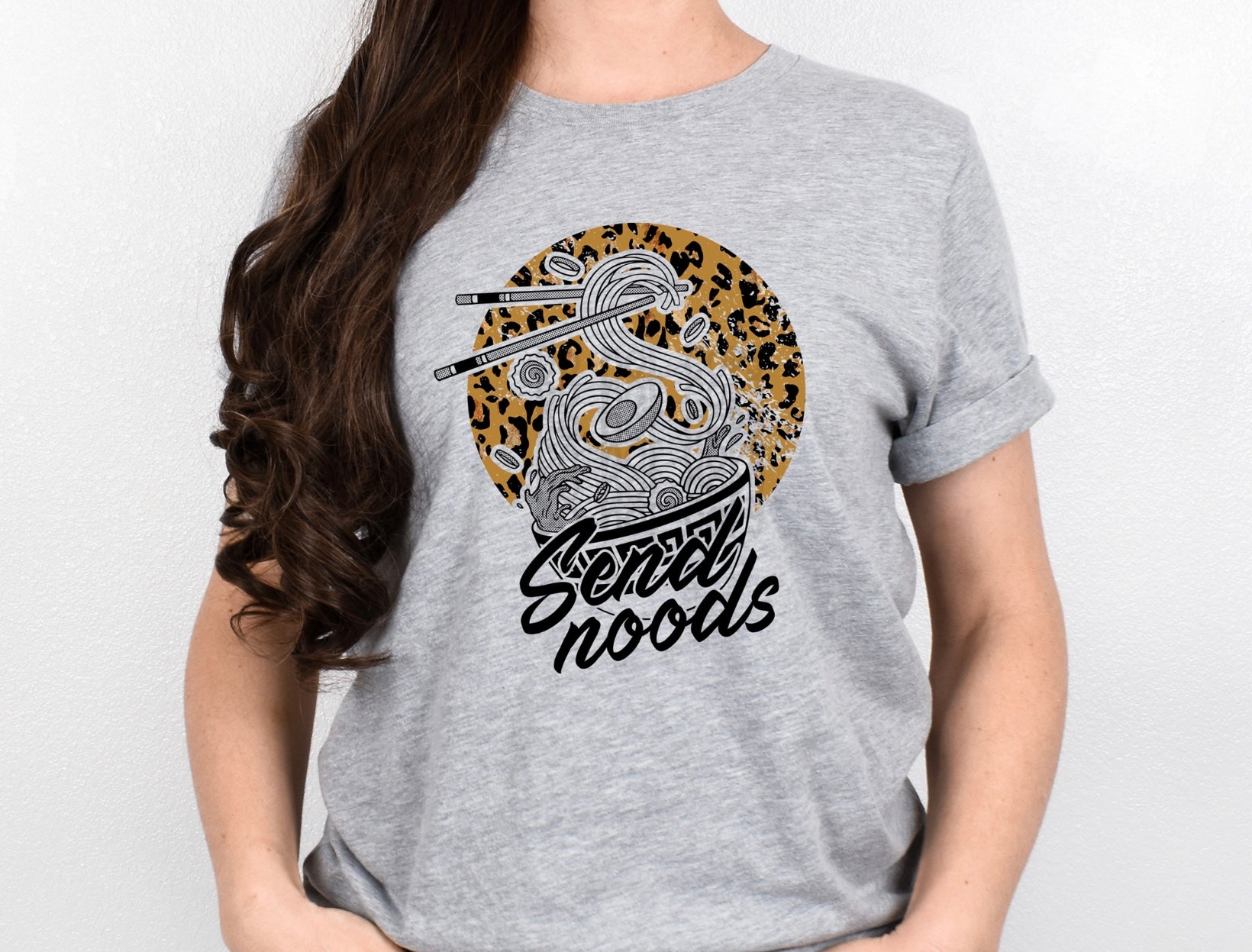Introducing the Send Noodles t-shirt! Wear this stylish shirt and send noodle-themed vibes to everyone you meet! Perfect for the expressive noodle-lover looking for a unique way to show off their tasteful style. Enjoy the noodles!