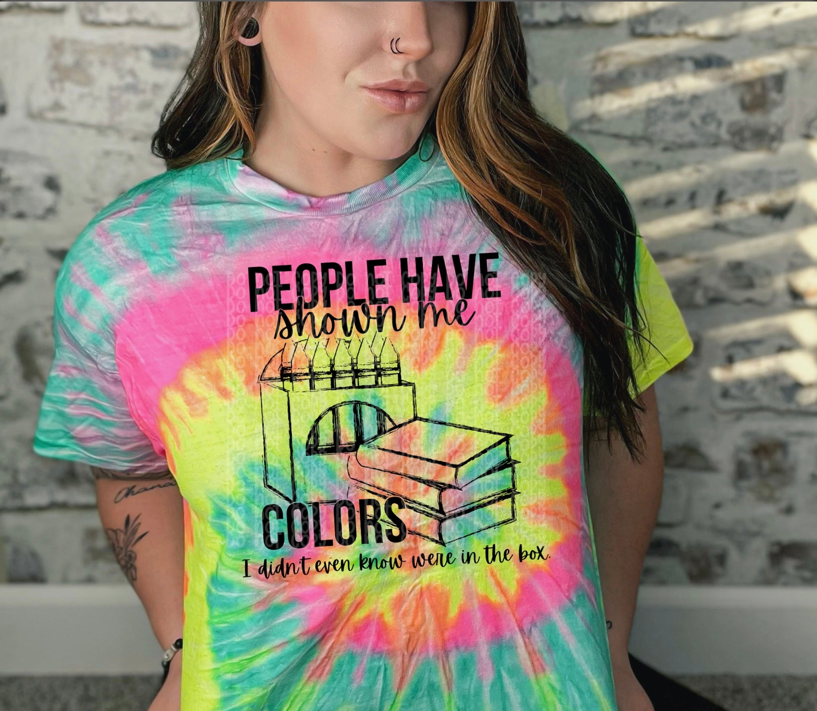 Express your unique style with Shown Me Colors! This fashionable T-shirt brings out the brightest shades of the crayon box to unleash your true colors. Make a bold statement while looking and feeling your best! Show the world who you truly are!