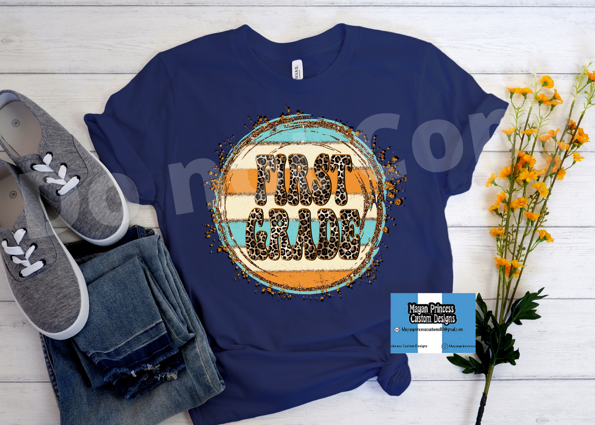 Make sure your tyke stands out from the pack with this 1st-grade leopard T-shirt! Crafted with comfortable cotton and with a sassy animal print, this shirt is perfect for any young fashionista. So let your little one show their wild side with this super cool T-shirt!