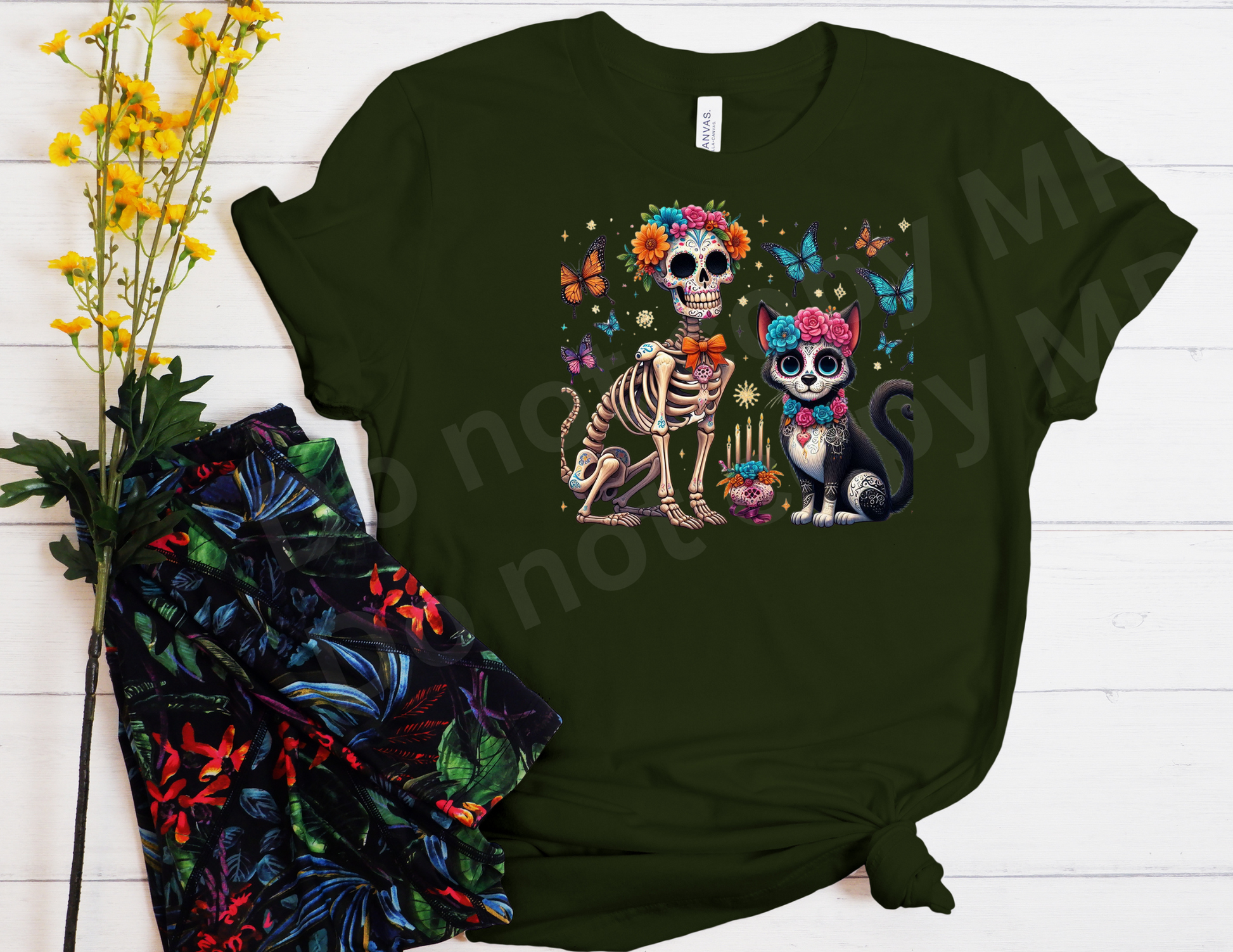 Cat and Dog Sugar Skull Sitting | T shirt Halloween