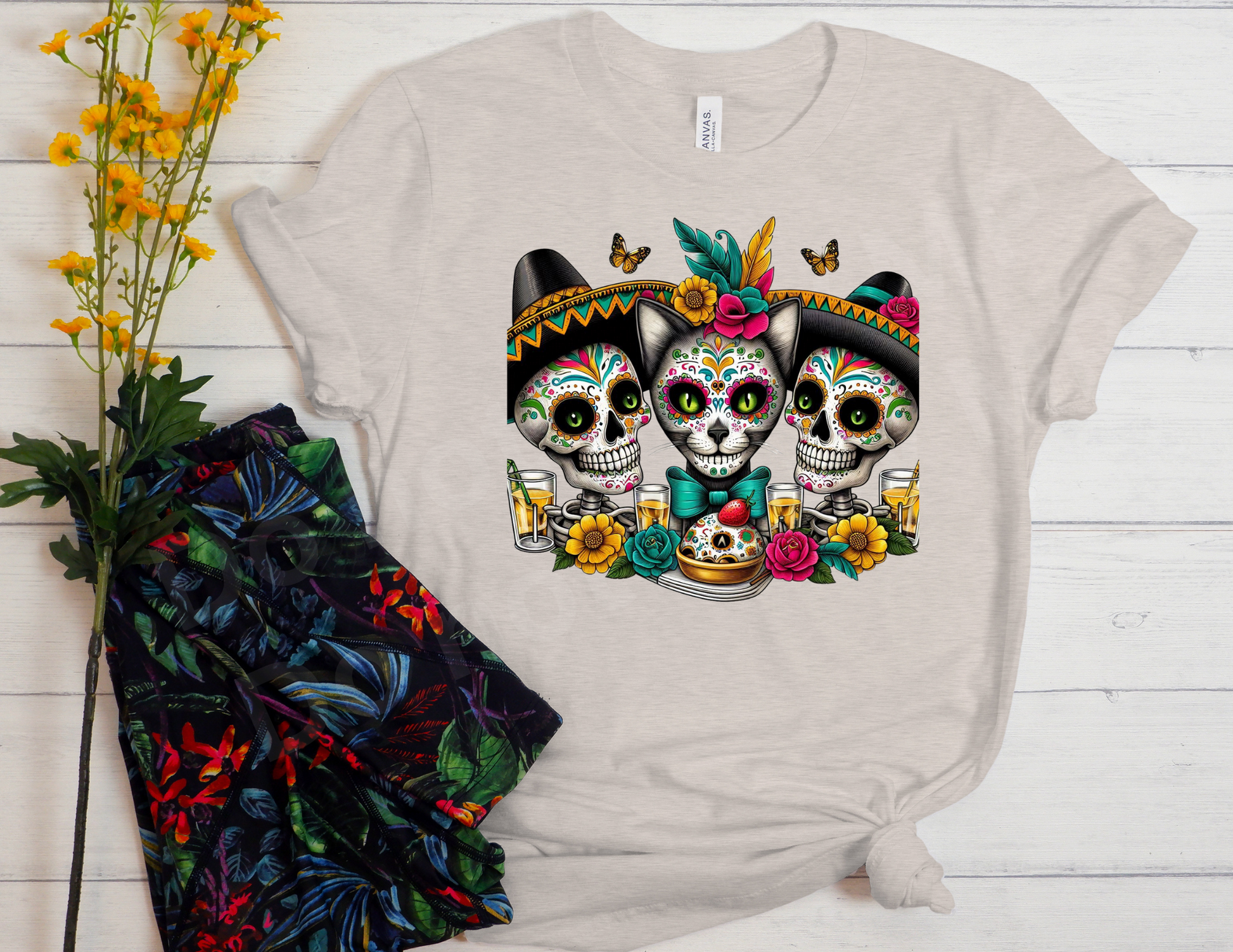 Embrace the spooky season with our Cat Sugar Skull T-shirt! Featuring a colorful and unique design, this shirt is perfect for Halloween parties. Stand out in style and show off your love for all things feline (and creepy)!