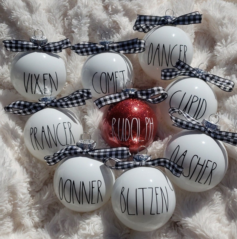 Includes all 9 Reindeers!! This Rae Dunn-inspired ornament set is sure to add some farmhouse charm to your tree!