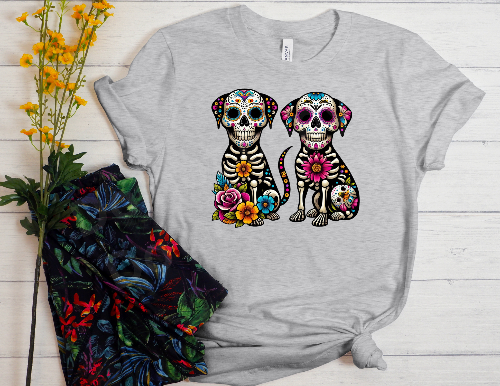 Unleash your Halloween spirit with our Cat and Dog Sugar Skull T-shirt! This playful design features a unique sugar skull twist on the classic cat and dog duo. Perfect for those who don't take themselves too seriously and love a good pun. (Limited edition for the day of the dead!)