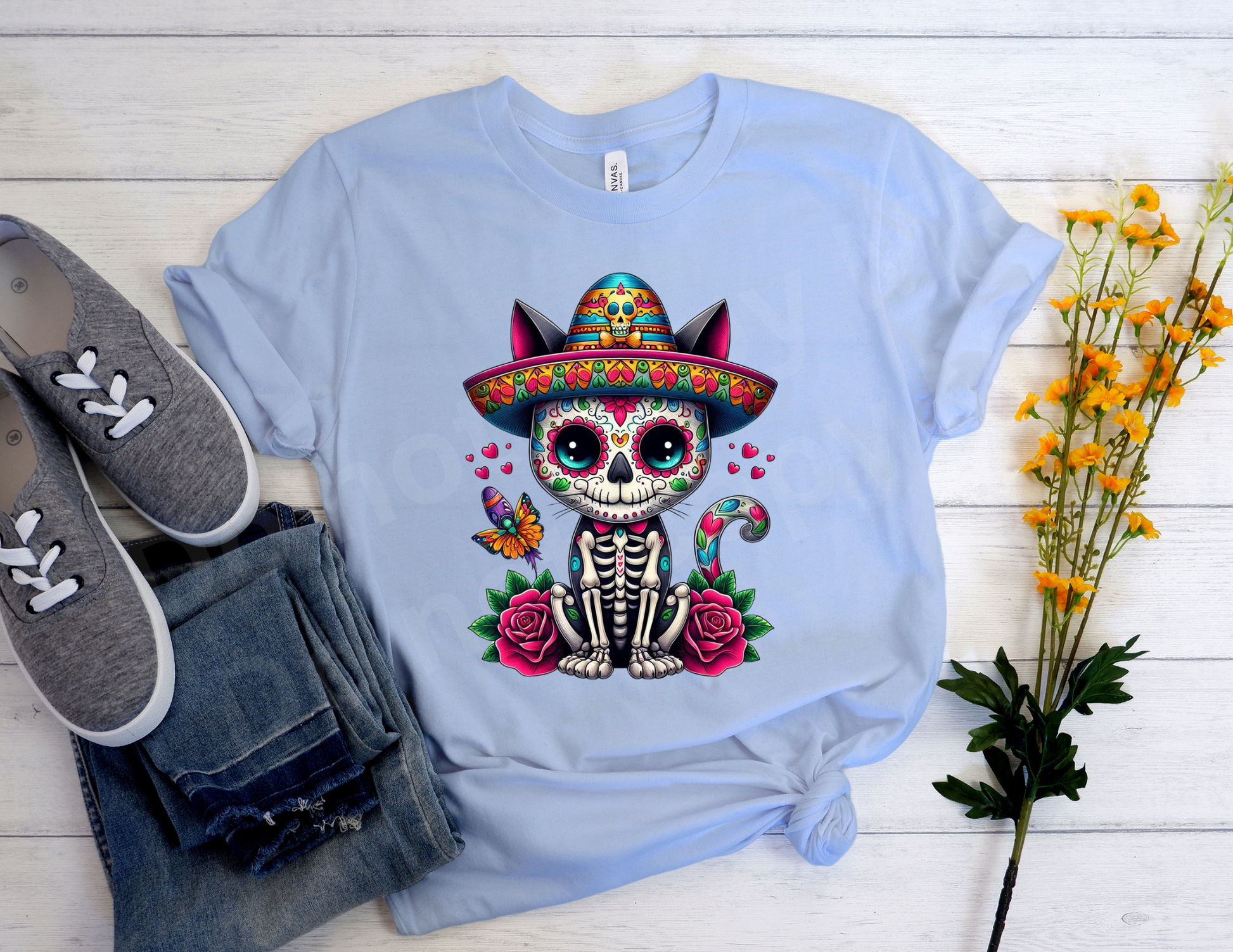 Embrace the spooky season with our Cat Sugar Skull T-shirt! Featuring a colorful and unique design, this shirt is perfect for Halloween parties. Stand out in style and show off your love for all things feline (and creepy)!