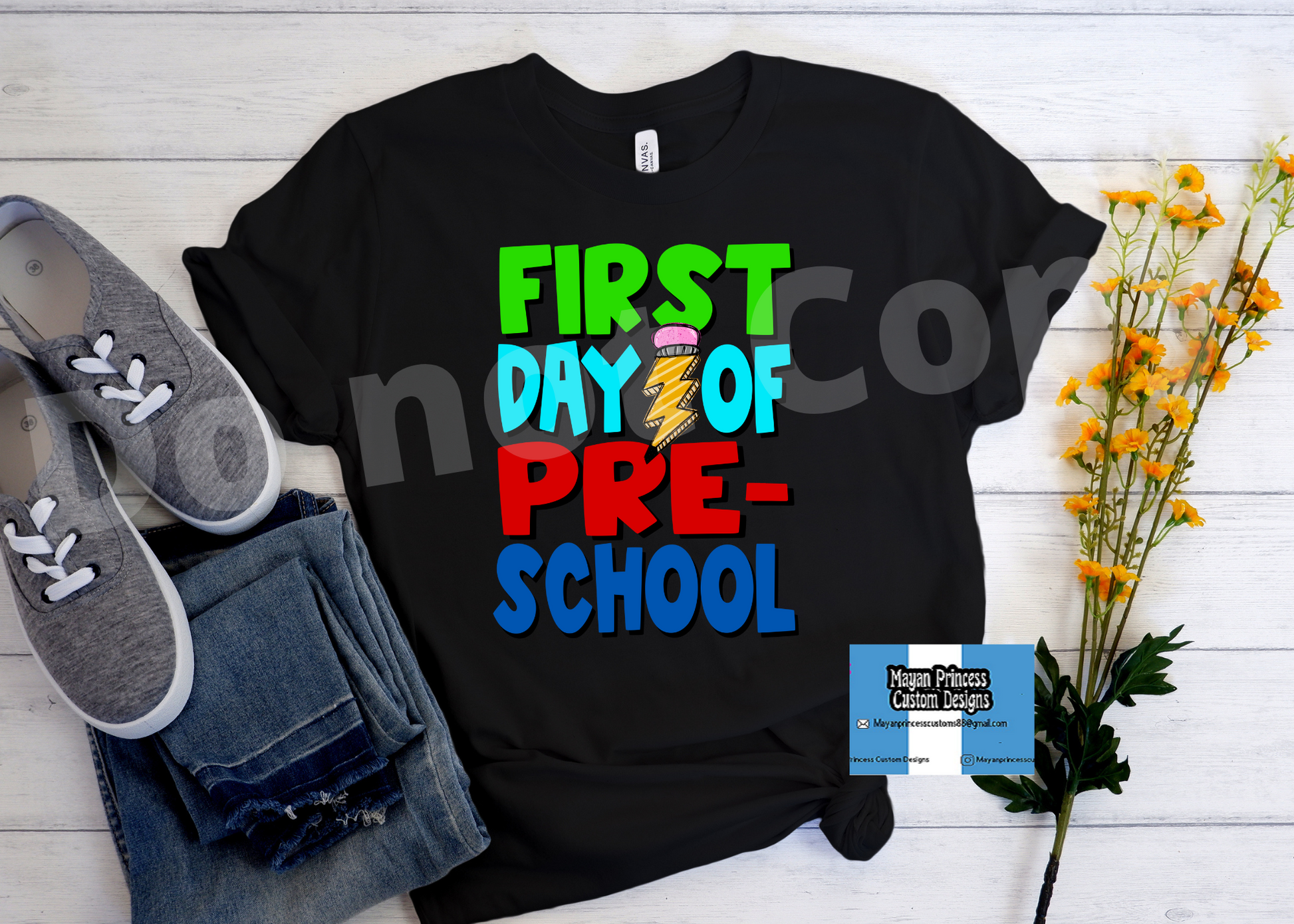 Start your little one's school adventure off on the right foot with this stylish, First Day of Preschool t-shirt! Perfect for the kids who are just beginning their educational journey, this tee is sure to be a hit for the occasion - and beyond! Rock on, scholar!