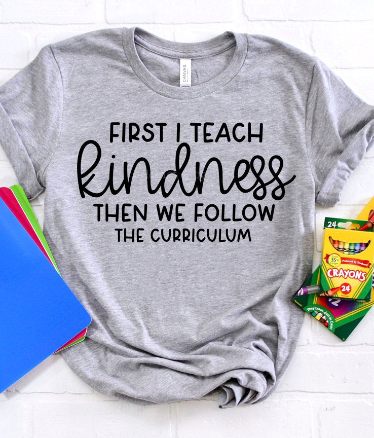 Spread Kindness in style with this unique "First I Teach Kindness" tee. Show your friends and family that it's cool to be kind with this eye-catching piece that will make heads turn. It's a great way to make a statement and promote friendly vibes! Wear it, and show the world kindness is key!